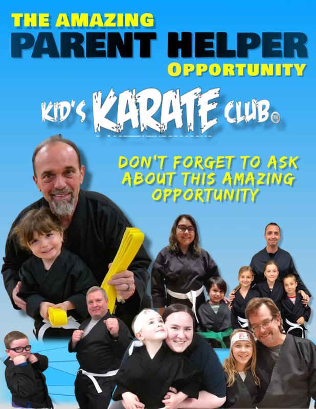 Every parent helper must wear a full, branded Kids Karate Club uniform in order to participate. If you’re not in full uniform during class, unfortunately, it just doesn’t work.